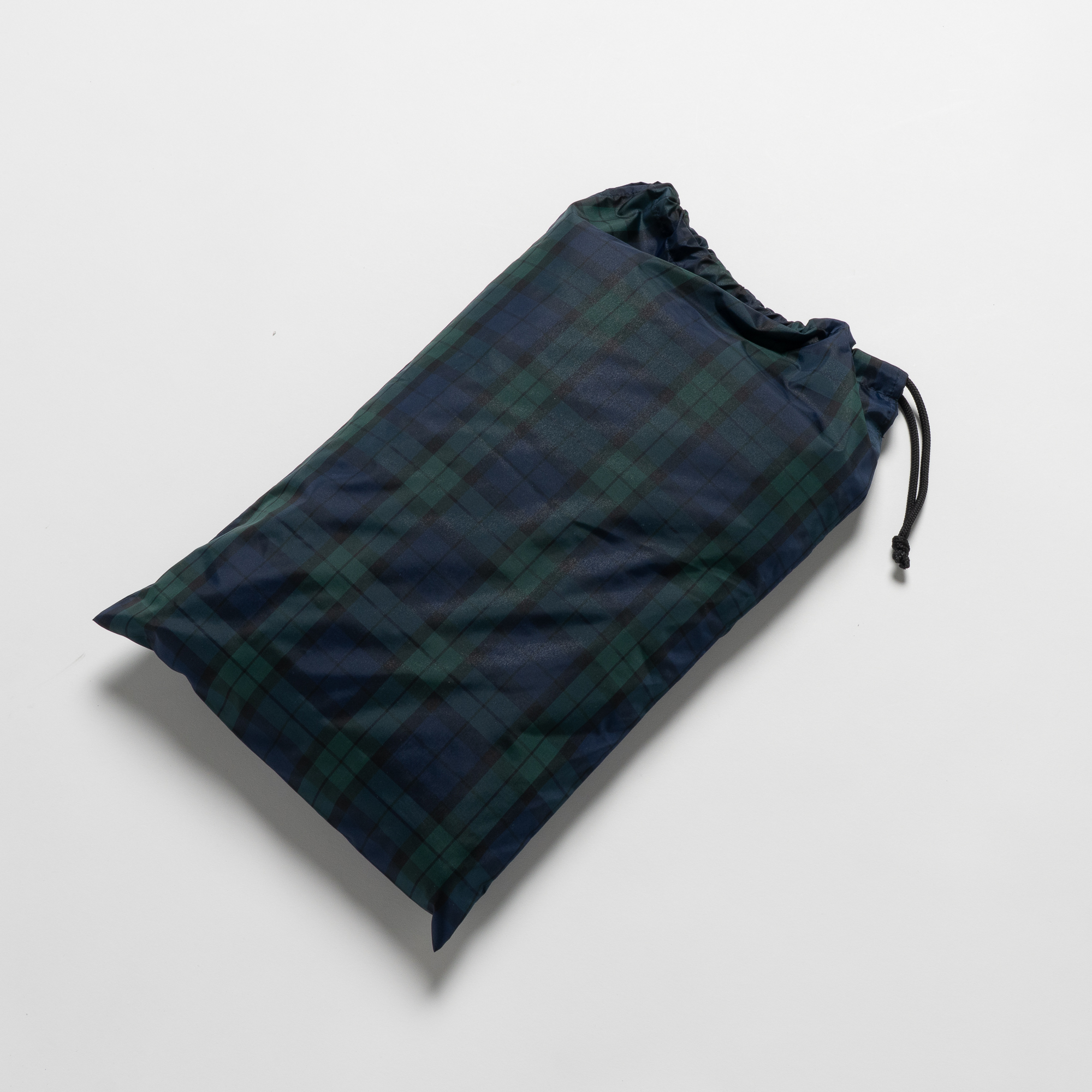男性も使いやすいチェック柄なのでホリデーギフトにも最適です。綺麗に収まる収納袋付き。