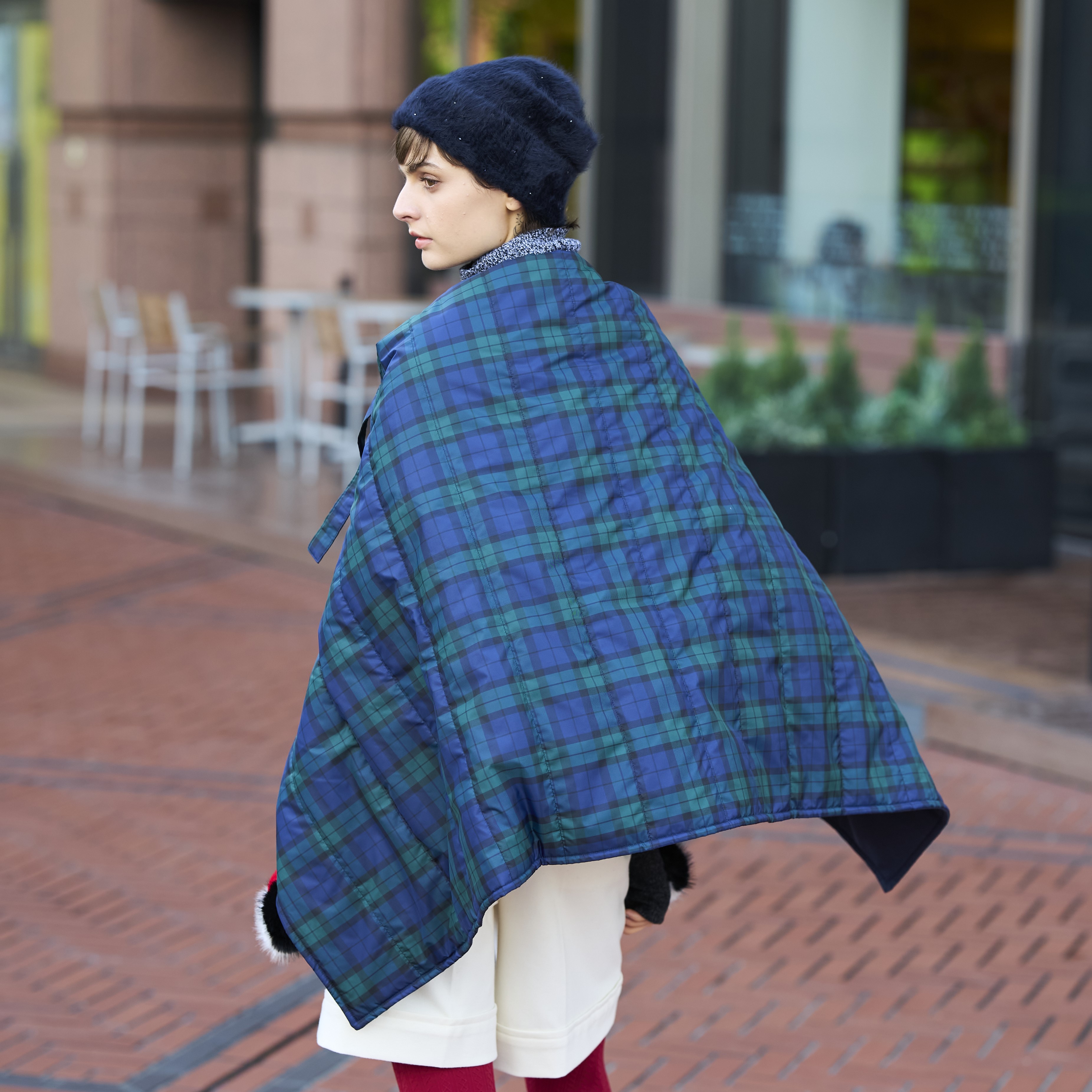 ボタンとタブを止めれば簡単に巻きスカートのように着用出来ます。極寒の日のカート移動はつらいもの。このブランケットを腰に巻けば、膝もすっぽりと隠すことが出来ます。