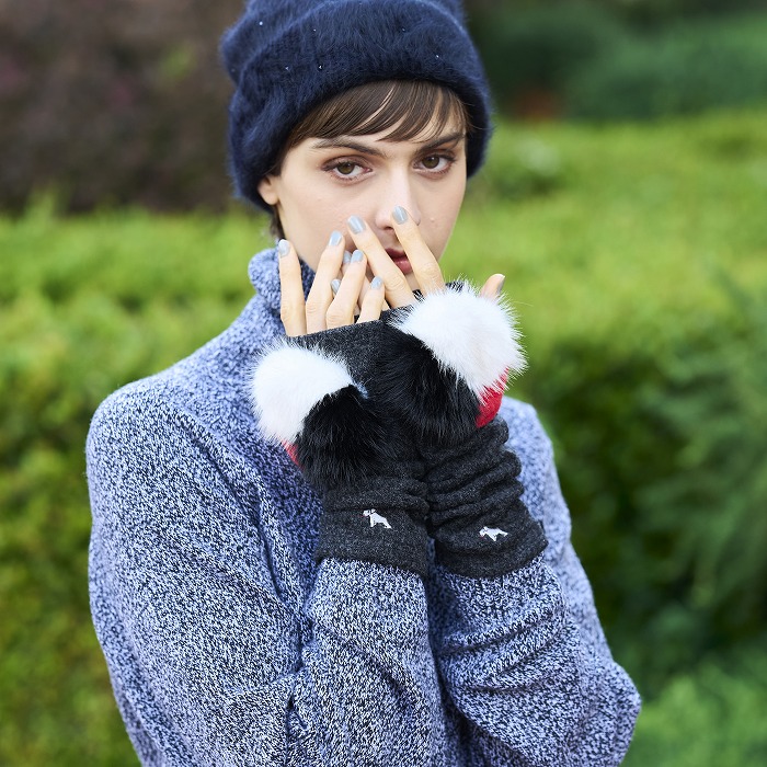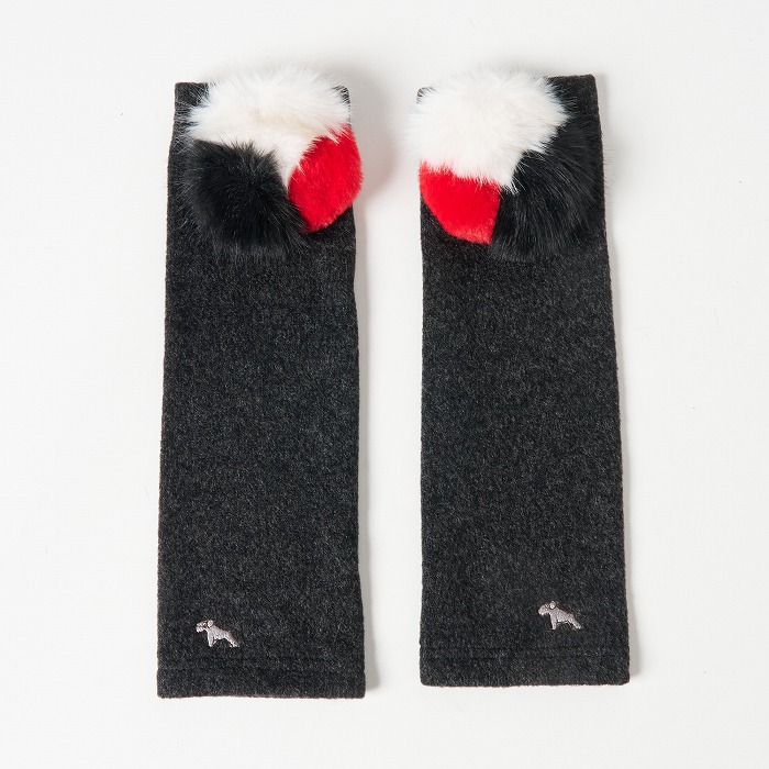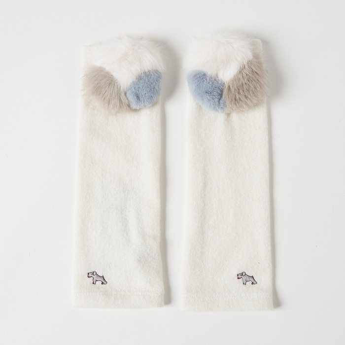 パッチワークされた3色のエコファーがチャーミングなハンドウォーマー。筒から親指を出してはめるスタイルです。手首もクシュっとカバーして普段使いもしたくなる可愛らしさ!手甲よりも手軽に使いやすい嬉しいアイテムです。今シーズンのウエアにマッチする絶妙な2色展開です。