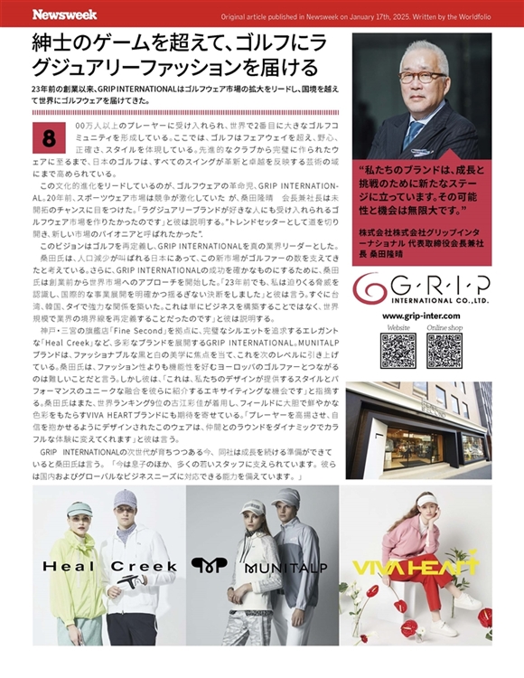 2025年1月24日発行のNewsweek International Vol.184号に弊社 代表取締役会長兼社長 桑田隆晴のインタビュ―記事が掲載されました。
