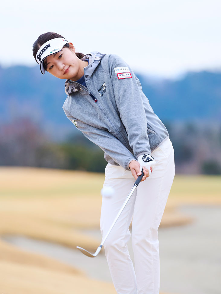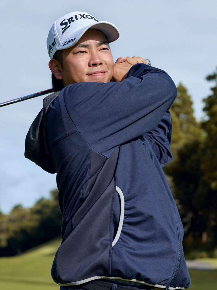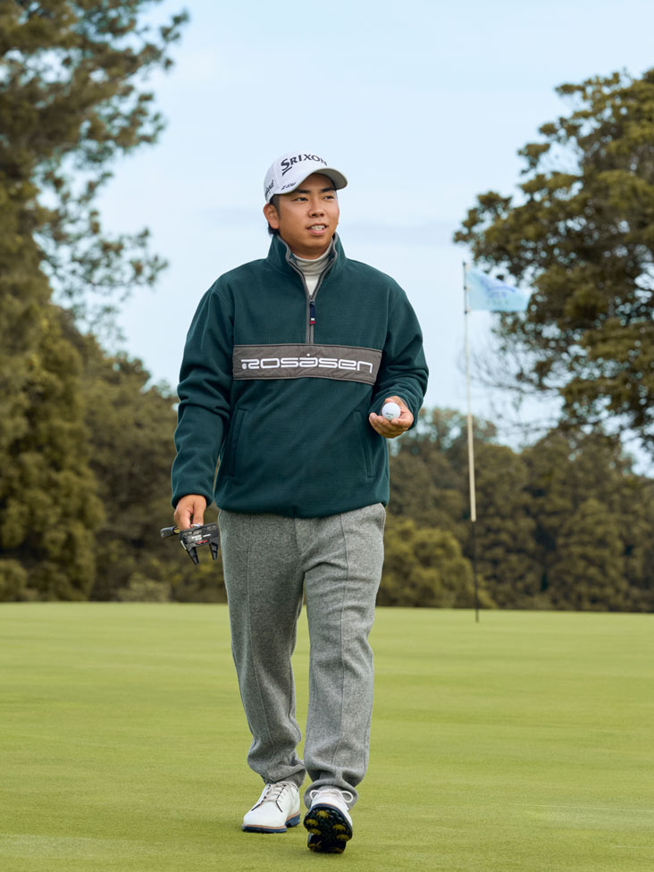 デイリーコーデにも着たくなるカジュアルでお洒落なデザインのゴルフウェアです。生地にもとってもこだわりがあるので、是非袖を通していただきたいです。今年もロサーセンと共に自分らしく頑張ります!応援よろしくお願い致します。