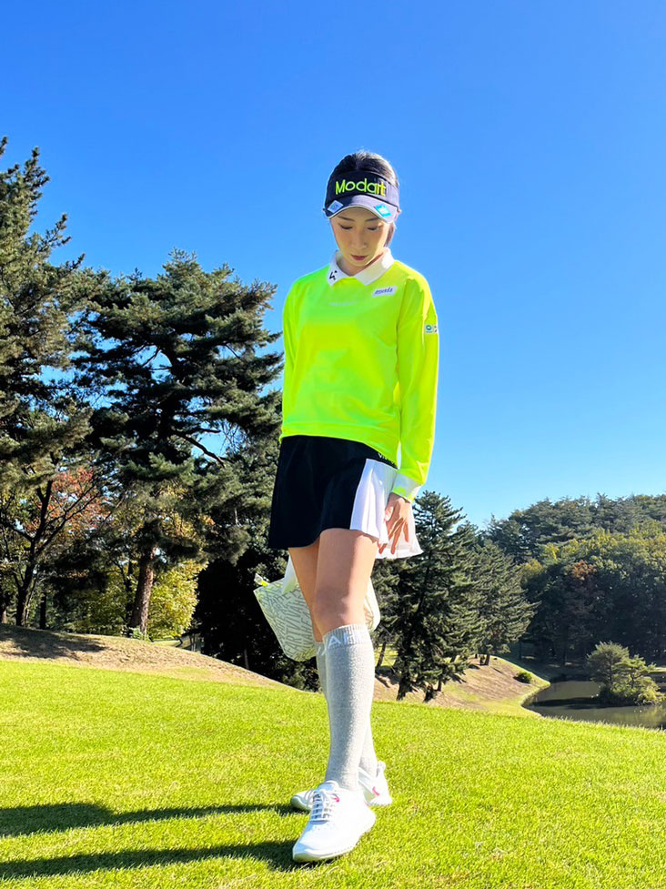 篠崎プロに着用頂いたのは、1枚で完成するソフトで軽いプルオーバー。