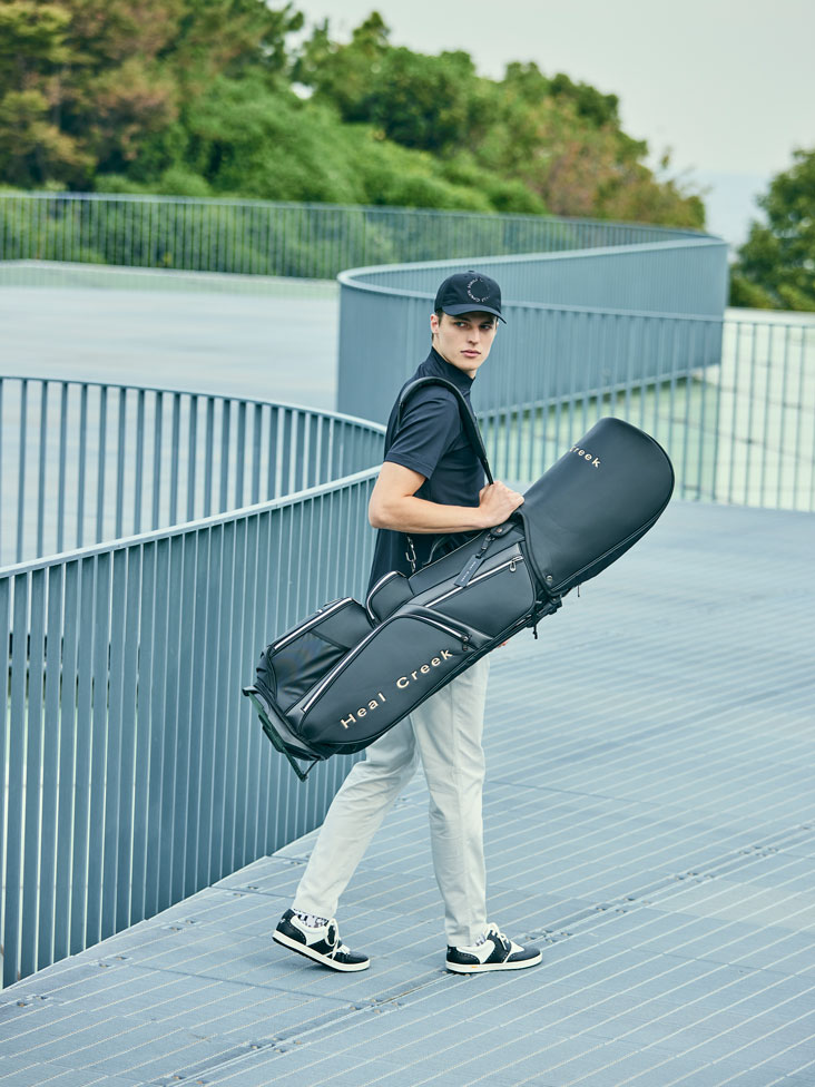 スタイリングにおいて、細部の選択が全体の印象を左右することは間違いありません。ブラックカラーのスタイリッシュなシャツにアイボリーカラーが上品な大人のパンツコンビを提案します。シャツのジップとキャップのロゴのメタリック感がスポーティー。さらに、ウイングチップのコンビカラーシューズを合わせ、一歩先を行く洗練された印象を演出することができます。独自のセンスを取り入れつつ、周囲と差をつけるおしゃれなスタイルの提案。