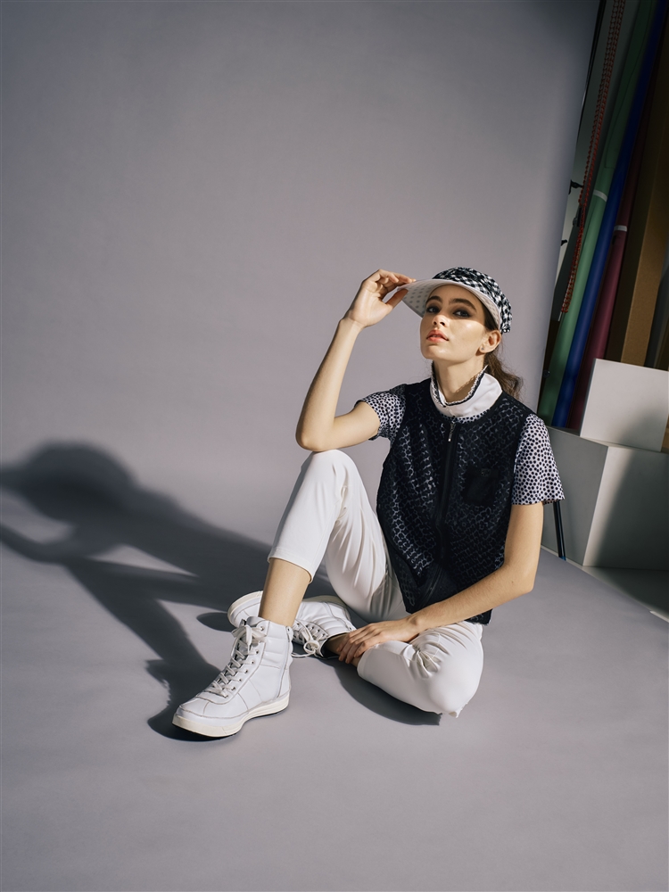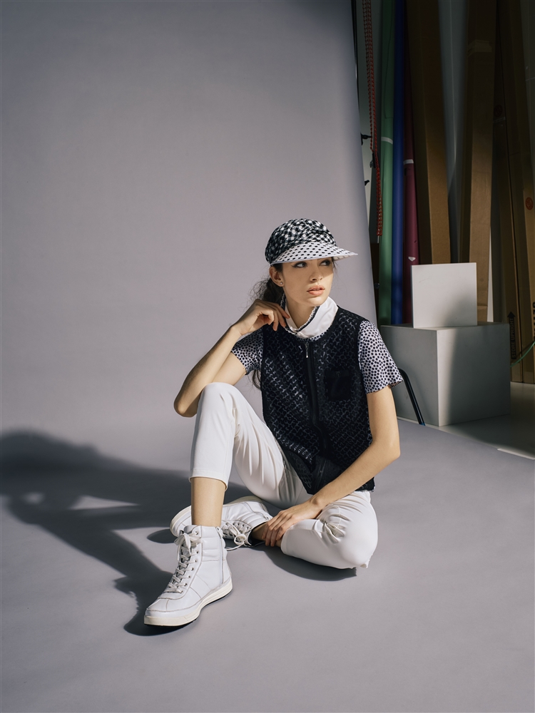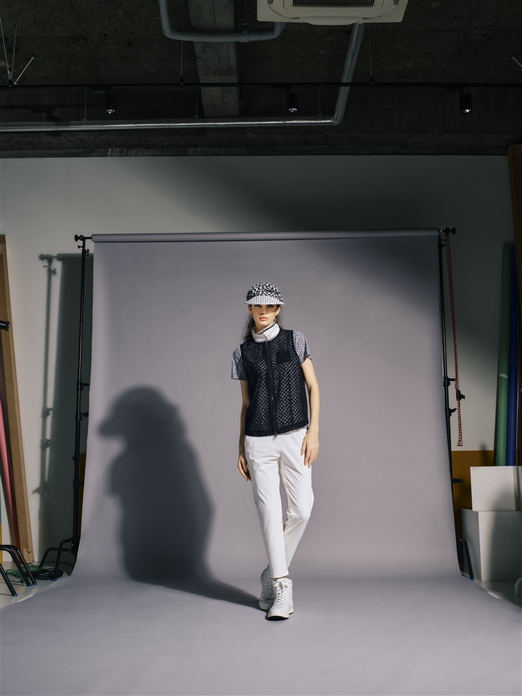 夏のおしゃれなシアーベスト。ポロにパンツだけでは何か物足りない。やっぱりベストはゴルフの必需品。でも夏は暑い。こう言うときに、このベストの出番です。下にプリントシャツと重ねたら、違った柄ができて面白いです。ワンピースの上に重ねても、キュートです。