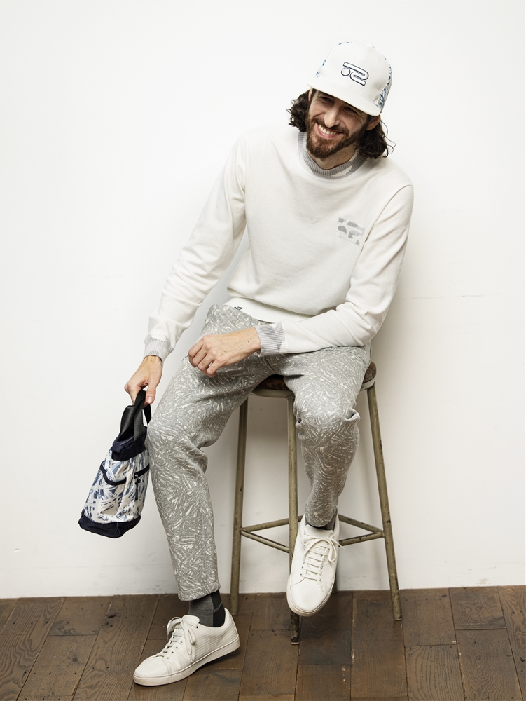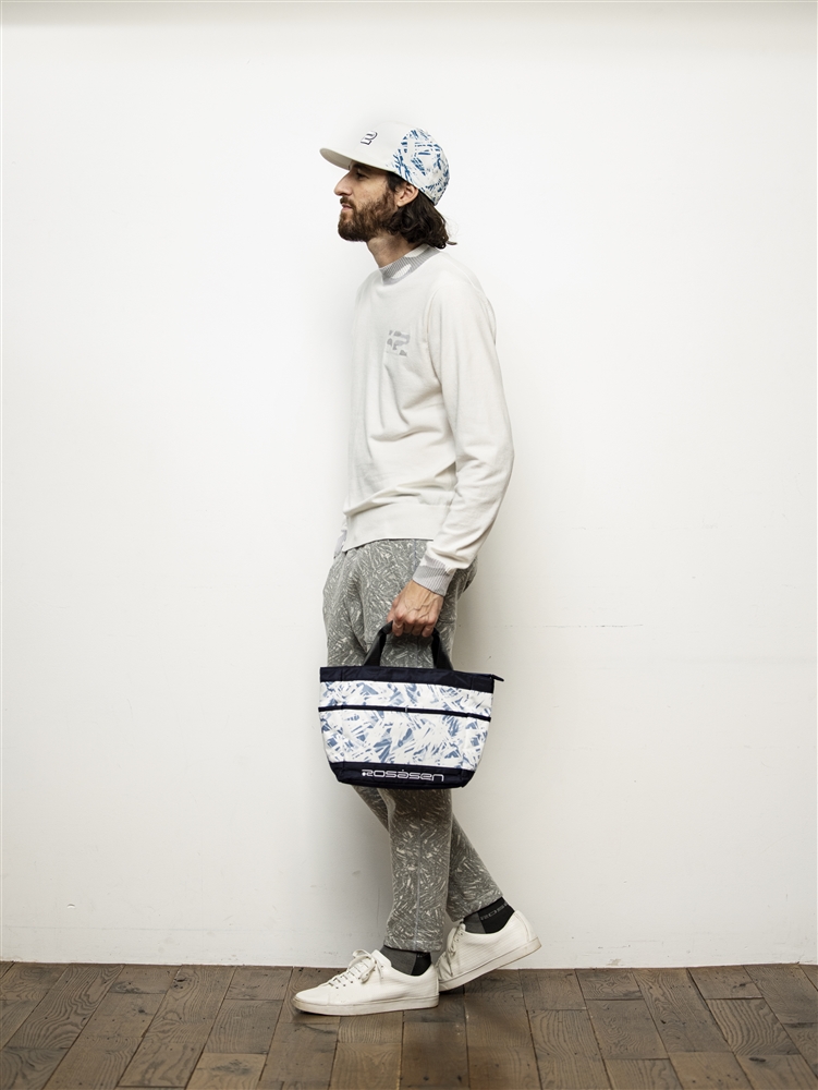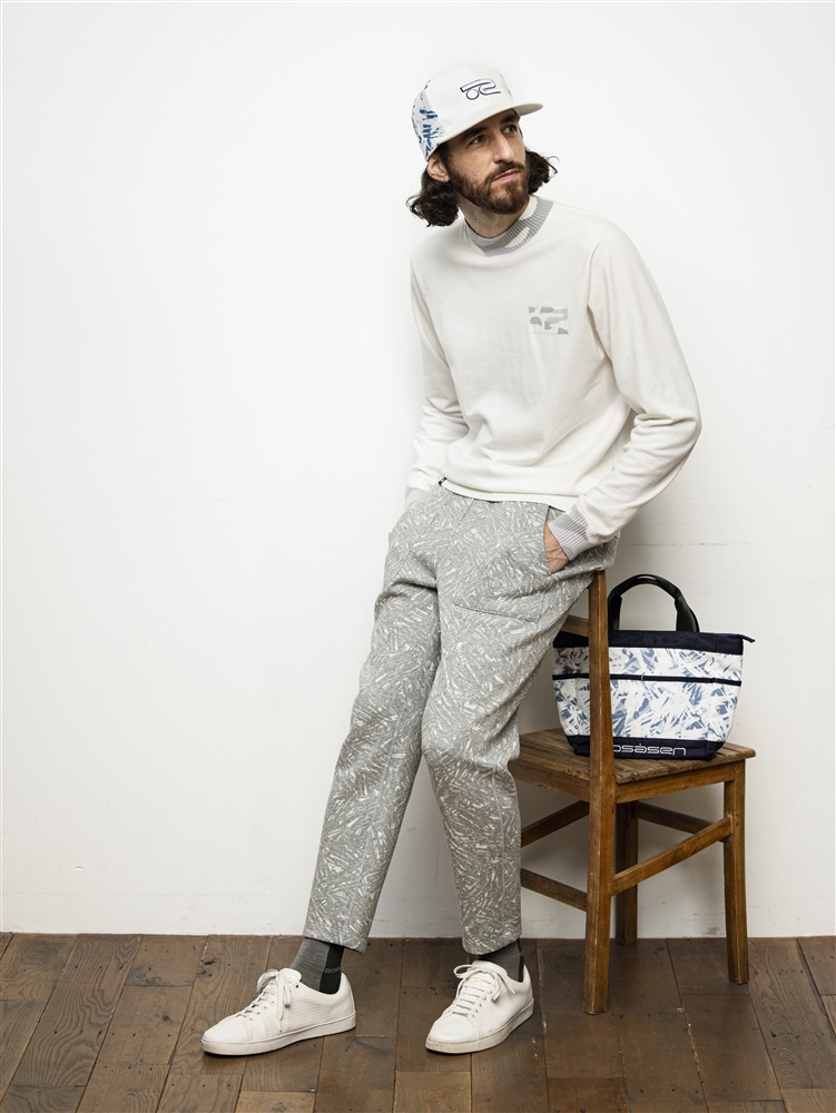 迷彩のロゴや衿と裾がポイントになっている高機能な糸を使ったキレイ目に着用できるモックネックプルオーバーと、リバー素材の表が迷彩柄のジャカードと裏に無地を組み合わせたパンツを使ったコーディネイト。トップスは薄手にしており肌寒い秋口にピッタリ。インナーで体温調整する事で冬まで対応してる作りに。アウターと合わせてもGOOD。同柄のキャップとカートバックでまとめる事によりキャッチ―でオシャレに決まる。