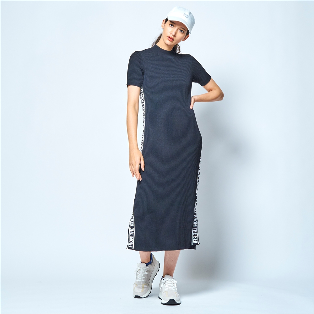 A-Line ワイドリブサイドロゴロングワンピース/048-68311