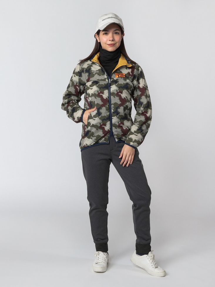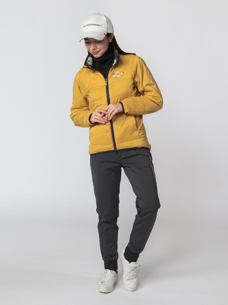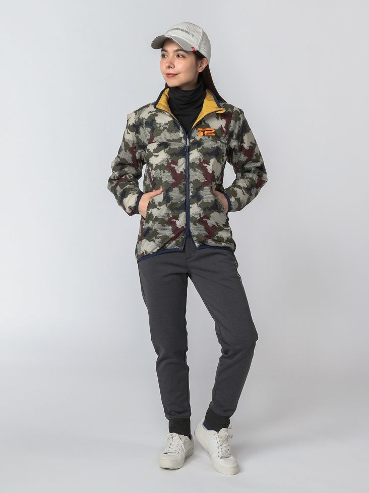 ブルゾンは場所によって中綿をなくしたり、少なくすることでスイングにストレスのかからない仕様、裏起毛のパンツはストレッチ性、防風性に優れた高機能素材を使用するなど、機能性も追求した真冬のラウンドに最適なスポーティスタイル。