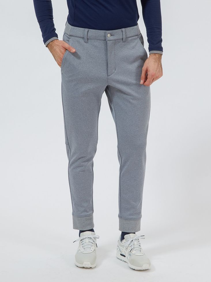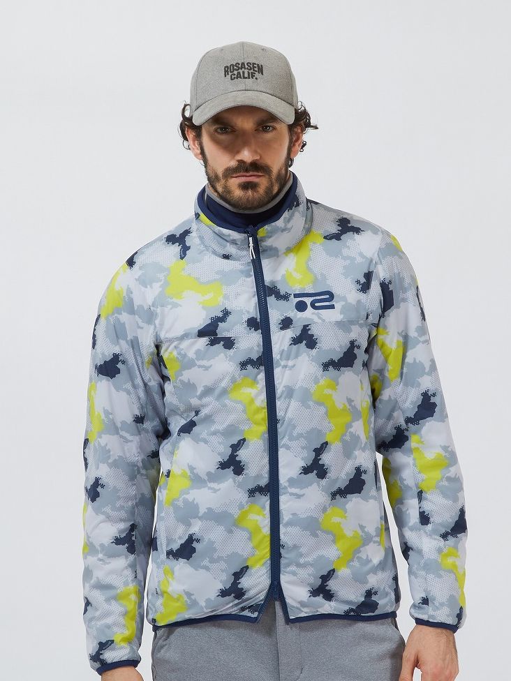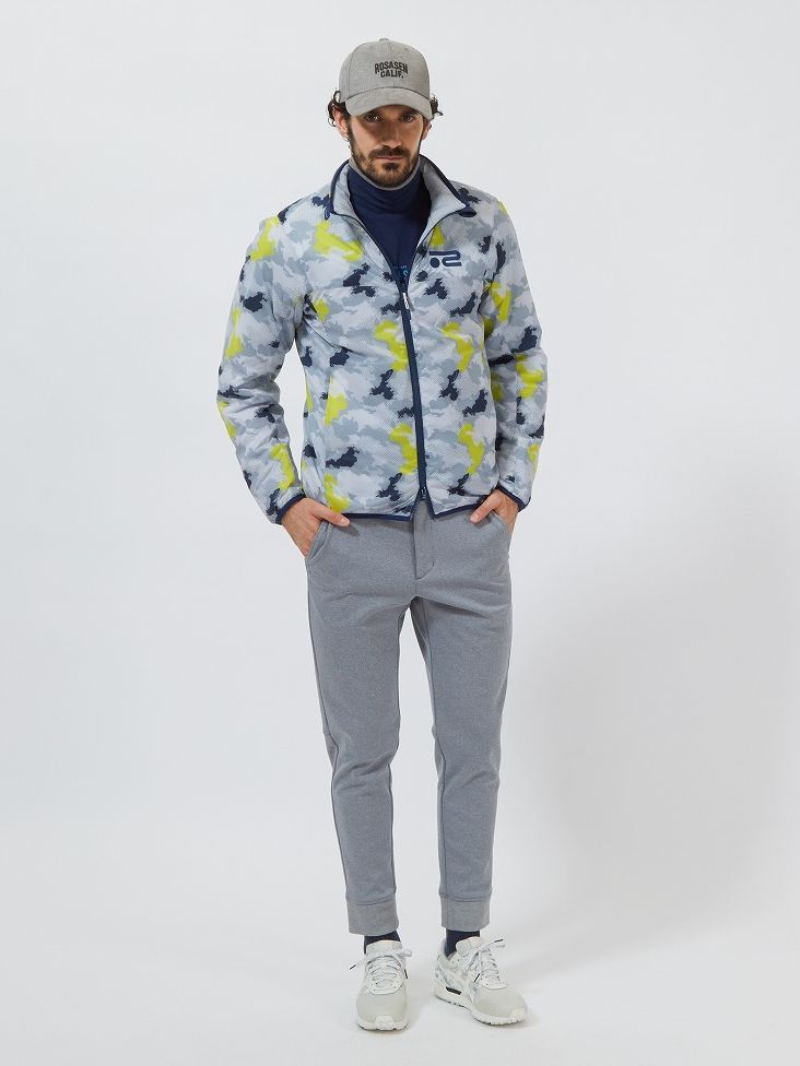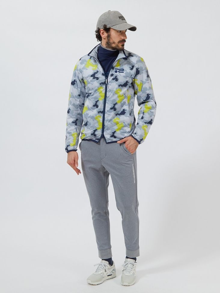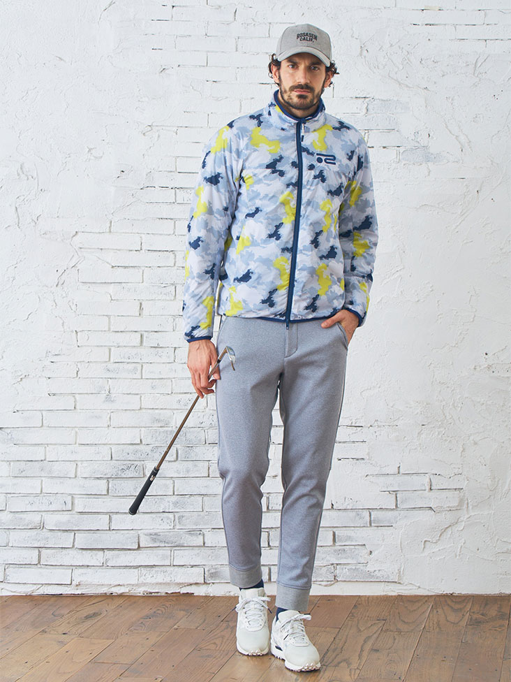 リバーシブルのカモブルゾンを前面に押し出した、グリーン上で目立つこと間違いなしのコーディネイト。細身のリブパンツを合わせることで、野暮ったくなりがちな冬のコーデをスタイリッシュでスポーティな印象に。防寒機能もしっかり備えた、真冬のラウンドに最適なスタイリング。
