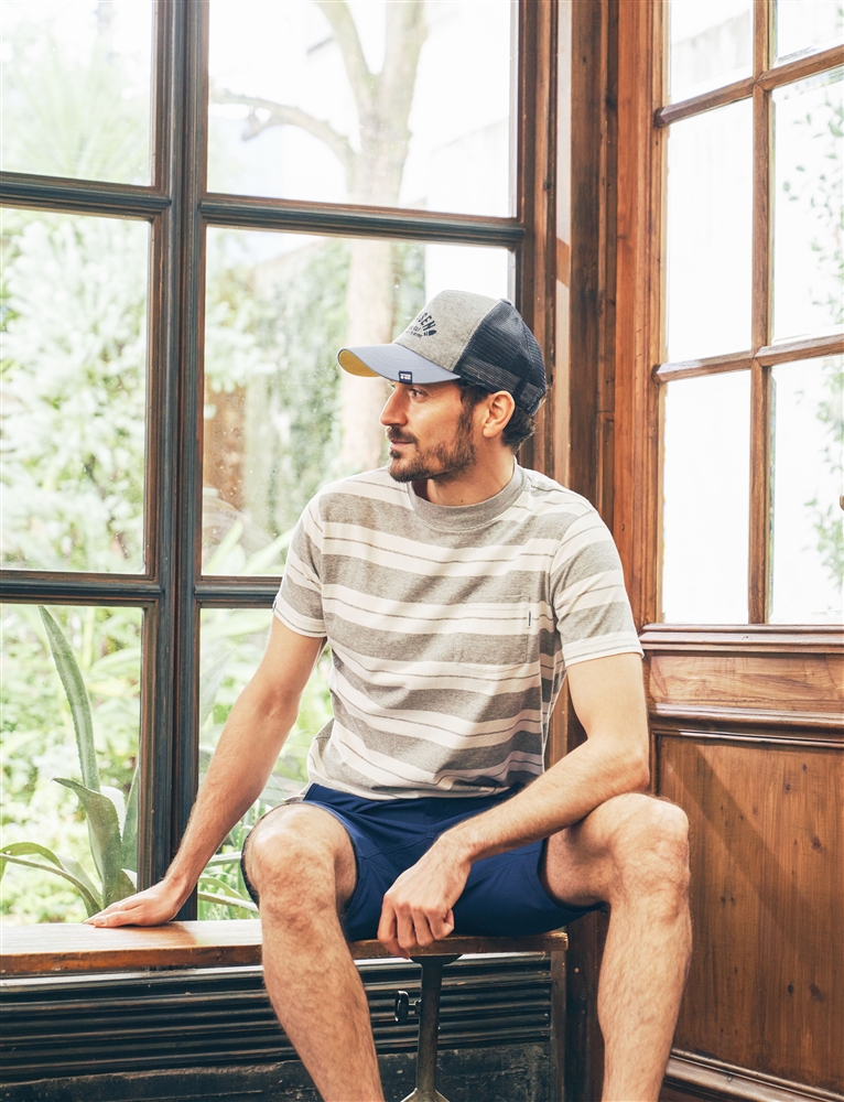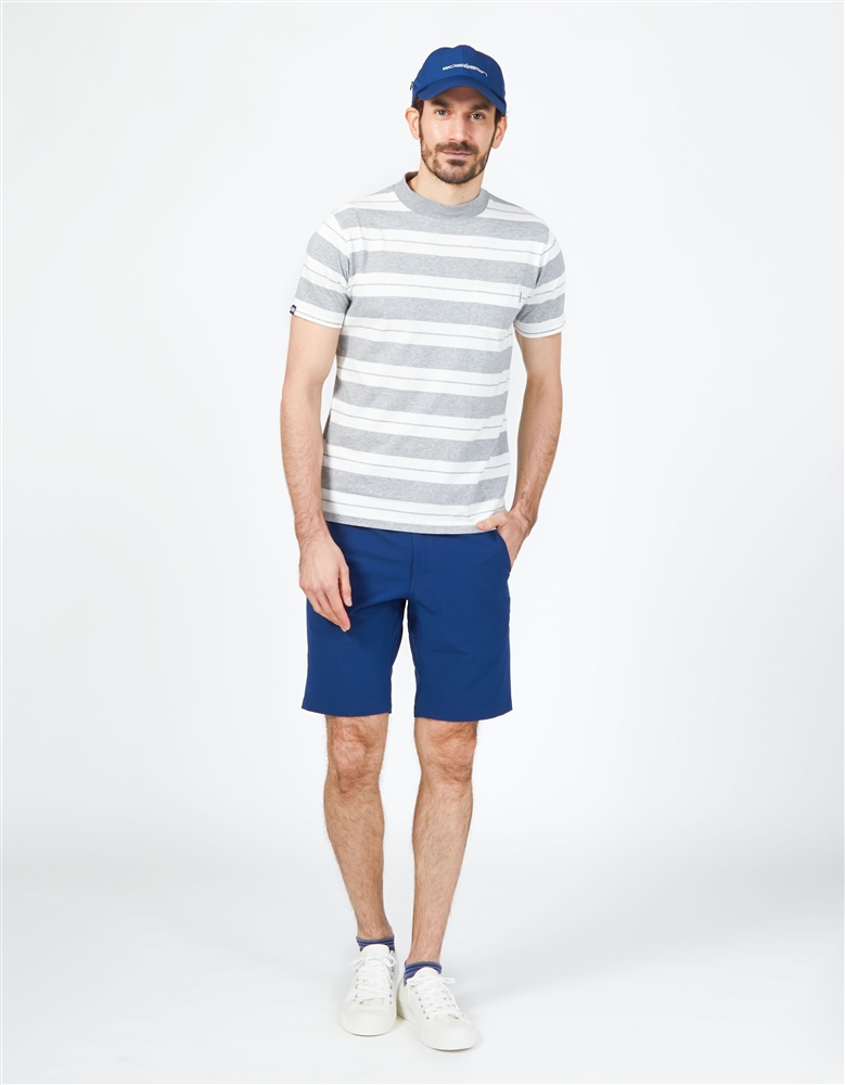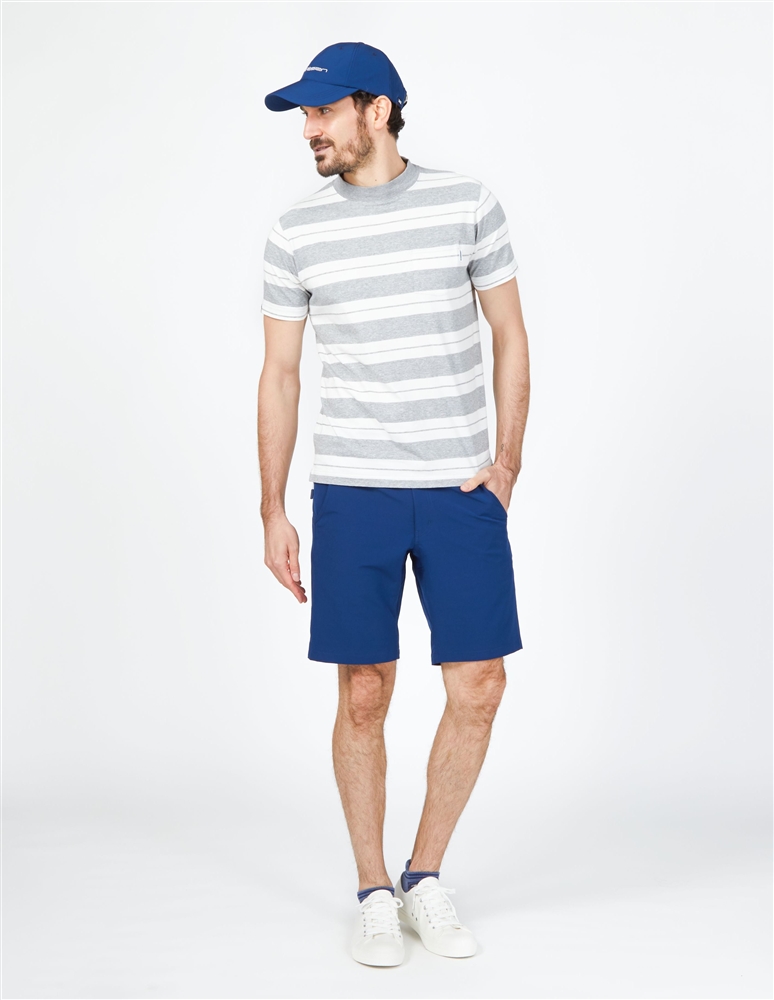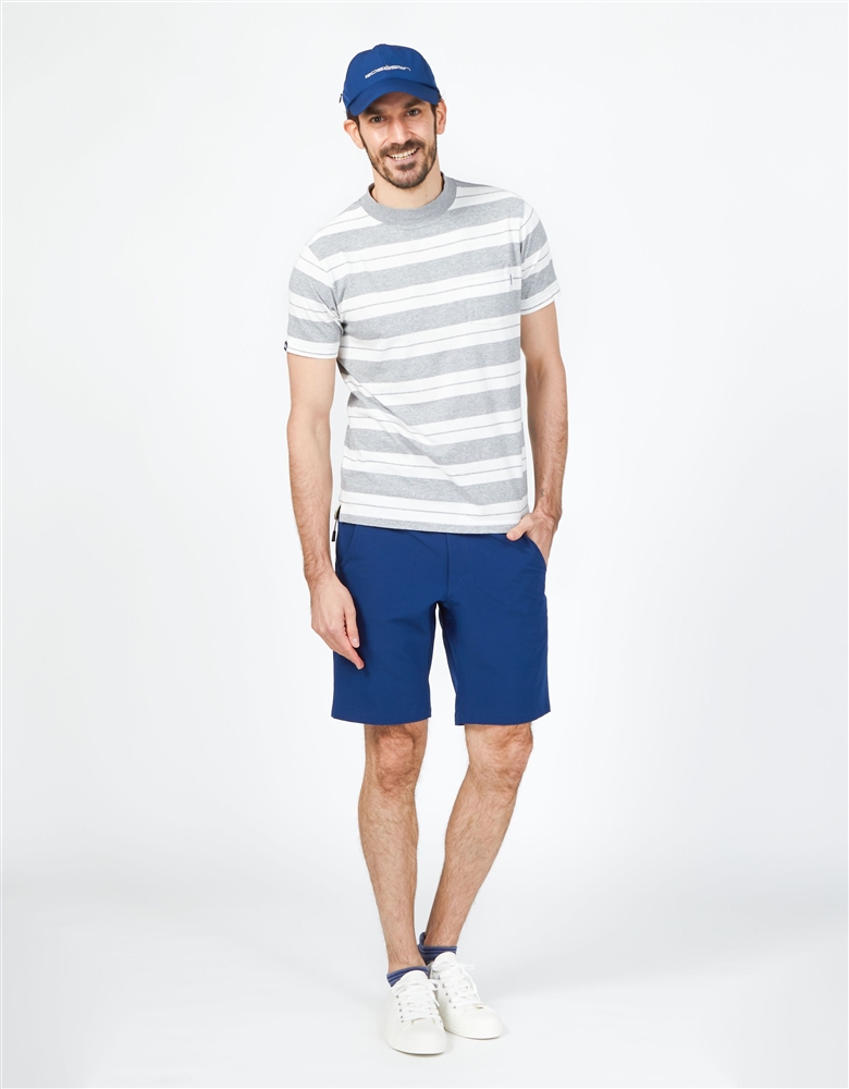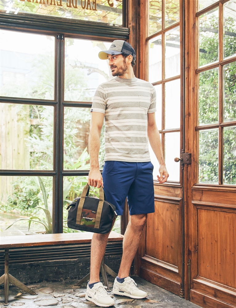 「太陽と遊ぶ」というコンセプトを持ったシェルテック素材を上下で合わせたスタイリング。吸水速乾やUVケアといった機能を持ち、真夏のラウンドに最適。