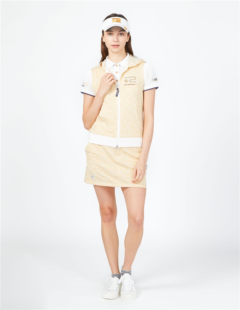 カジュアルな雰囲気だが、中のポロシャツを機能素材で合わせ、カジュアルさと機能性を合わせもったスタイリング。