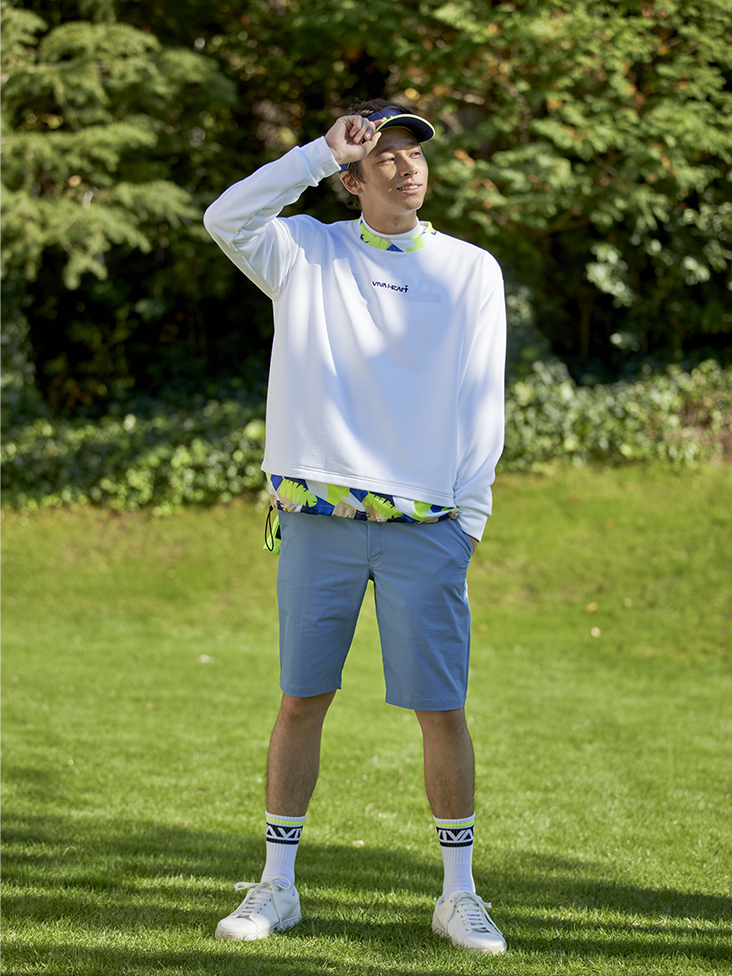今季22SS、ショーツに合わせるソックスはレギュラー丈でスタイリングして頂くとより、旬な見え感に昇華します。