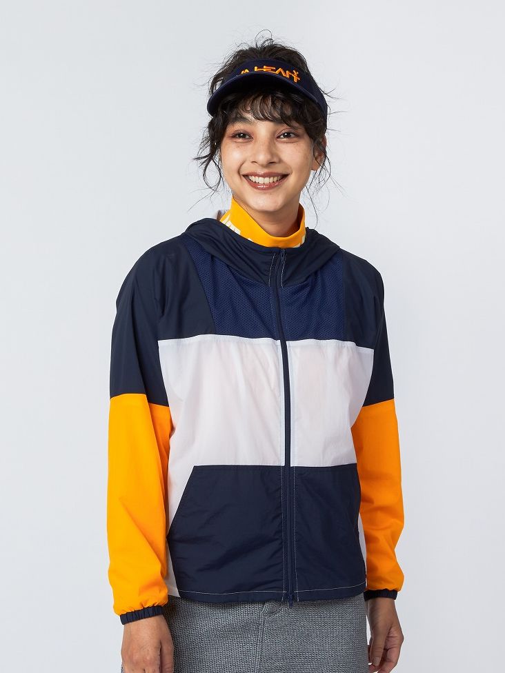 撥水・軽量ストレッチのナイロンリップのソフトシェルアイテムのスタイリング。