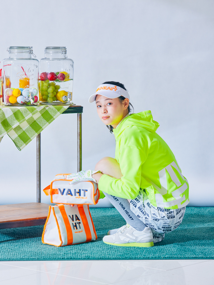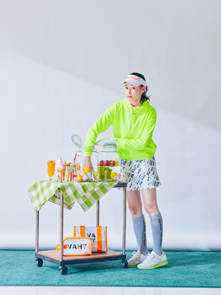 ~モノトーン柄のスカートとネオンイエローでスポーティーなスタイリング~