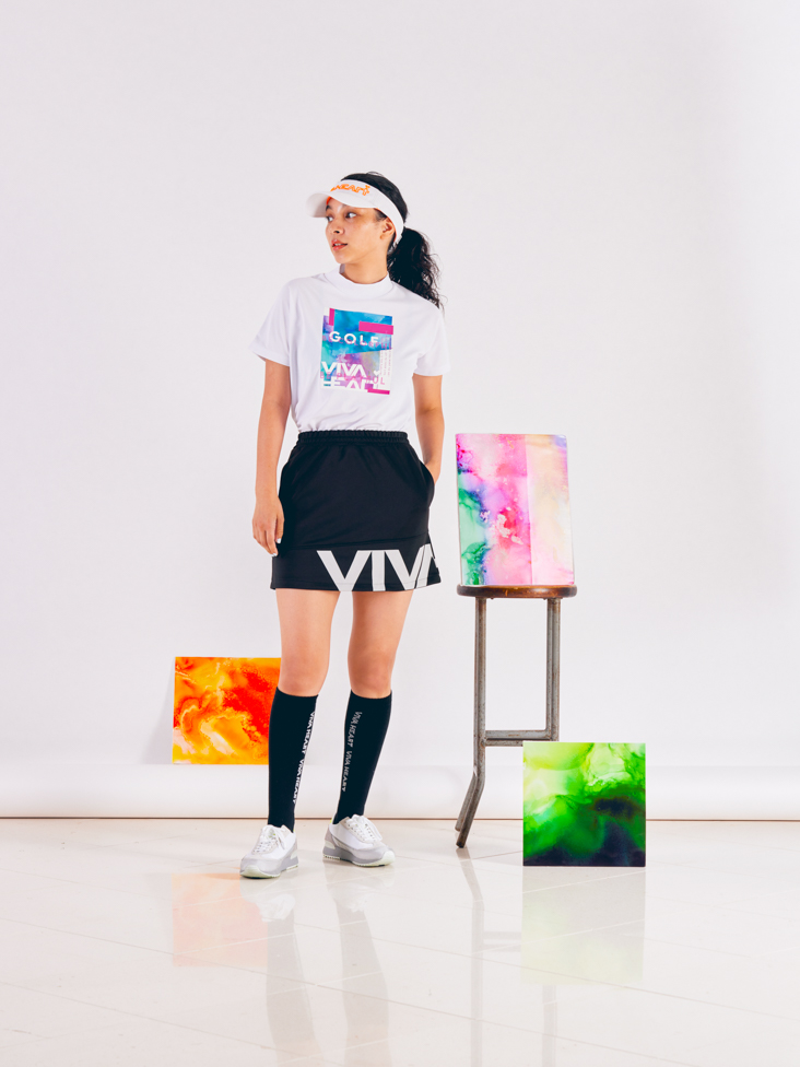 フローズンの様に溶け出す世界に一つだけのアートをVIVA HEARTというキャンバスに描いたアイテム。ドルマンスリーブでリラックスフィットのモックネックシャツは、生地が身体にまとわりつかず軽快な着心地を演出します。ボトムスはストレッチ性抜群の軽い着こなしのジャージ素材のスカートをスタイリングしリラックスできるコーデに。