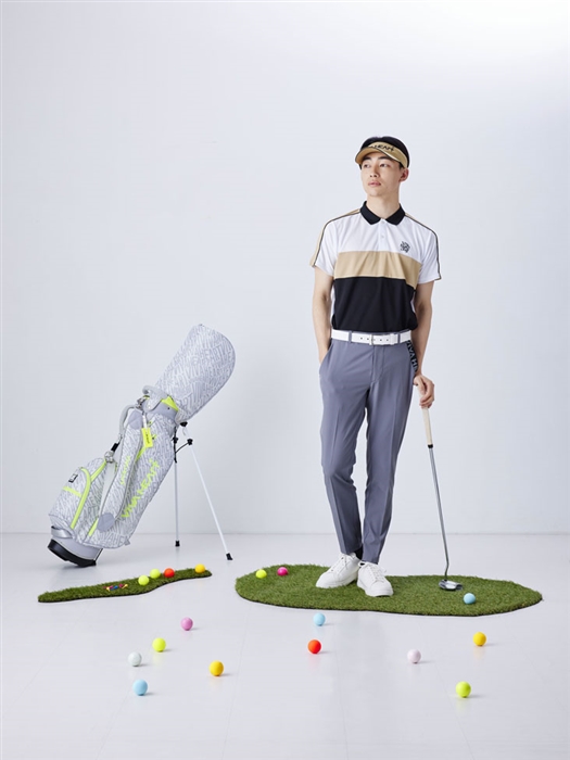 3トーンでまとめたメンズライクなカラーブロッキングのポロはシンプルなボトムスにも相性抜群。スタイリングのカラーを中間色のトーンでまとめる事で流行りのアーバンゴルファーに昇華させるクリーンで清潔感のある見え感がポイントのスタイリングです。