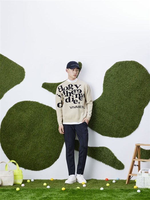 ポジティブなメッセージが描かれたタイポグラフィーニットとジャージーパンツのスタイリングはこの時期のラウンドに最適な肉感のスタイリングに仕上げています。