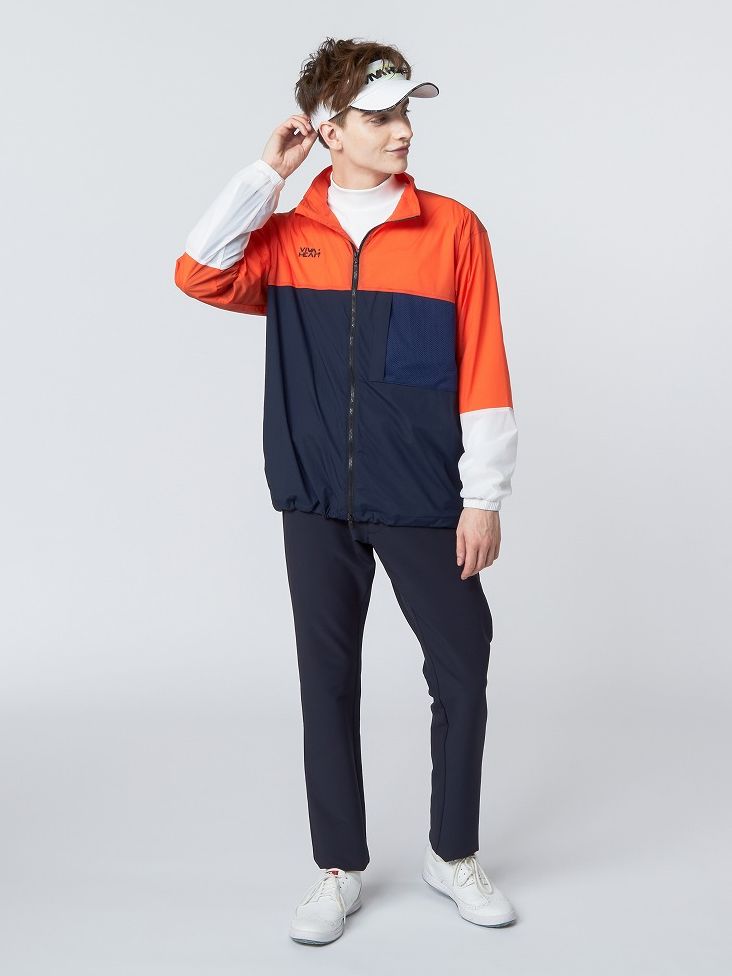 ソフトシェルアイテムのスポーティースタイリング。非常に軽い撥水ストレッチリップストップ素材で着用感のストレスもありません。リラックスフィットのシルエットでトレンド感もプラスしています。又、パッカブルの仕様になっているのでコンパクトに持ち運びも便利なアイテムです。