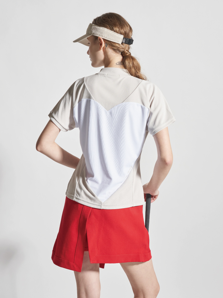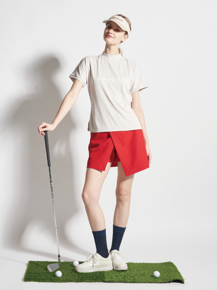 背中にハートの切り替えが入ったトップスは気付いた人が笑顔になるような密かなSWEETスタイル。ジェンダーレスな巻きスカート風のレイヤードショートパンツを合わせてちょっぴり大人のVIVA HEARTを提案。