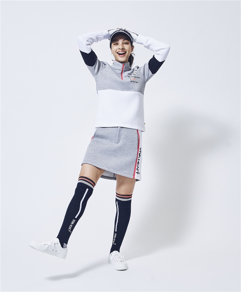 ウェア契約しているプロがリスペクトしている言葉をタイポグラフィで表現したアイテム。ストレッチ性のある中肉のダンボール素材を使用し、動きやすさ、着心地感も抜群です。モノトーンの色合いのなかに蛍光カラーをポイントで使った見え感はスポーティーな中にビバハートらしいPOPな印象を、程よいラフ感がお洒落見えするスタイリングです。ゴルフラウンドから練習まで着用できる新しいスタイリングです。