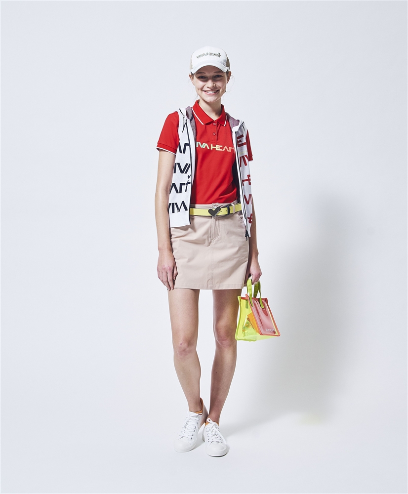 ハートバックルのベルトやPOPなビタミンカラーのスケルトンBAGと合わせることで上品さの中に残したVIVA HEARTらしさがコーディネートのアクセントになっています。