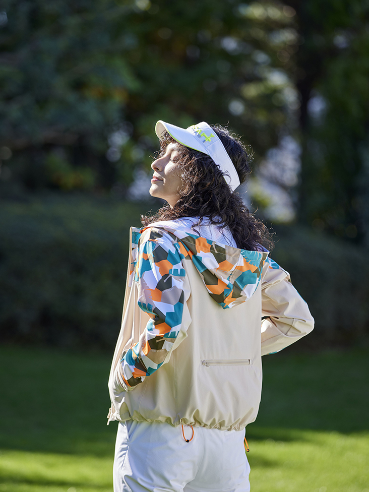 「VIVA FLOWER MARKET」のテーマを元に春立ち上がりは、大胆に花びらとリーフのモチーフをジオメトリックパターン目を引くネオンカラーがVIVAっぽく元気な柄で シャツとブルゾンでセットUPで アウター選びに困りません ボトムは機能的なマジックウェストの仕様なのでウエストのラインは楽なのにすっきり見えます。